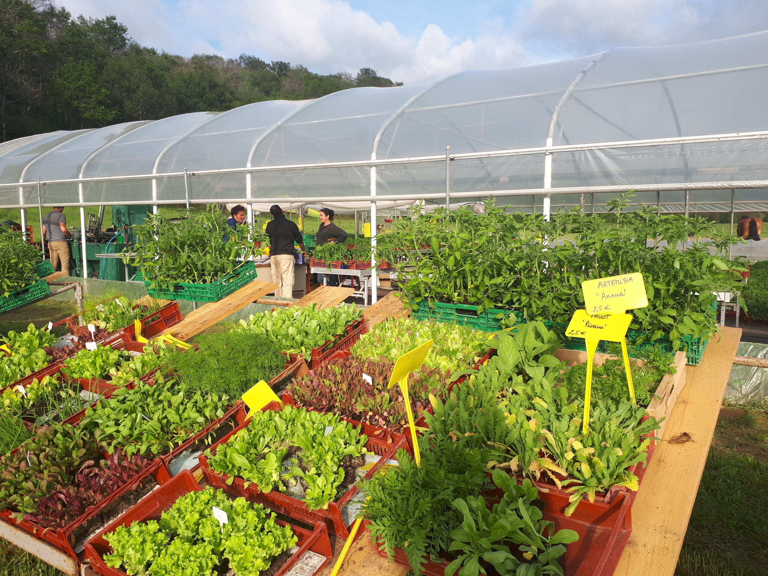 Généralement, nos plants ne sont pas traités. Nous privilégions la protection biologique intégrée : nous relâchons des insectes auxiliaires favorables dans nos serres, en particulier pour gérer les pucerons. Nous utilisons aussi des préparations à base de plantes (préparations fermentées et macérats), et, si nécessaire et exceptionnellement, de la bouillie bordelaise (mildiou) et du Bacillus thuringiensis BT (chenilles).